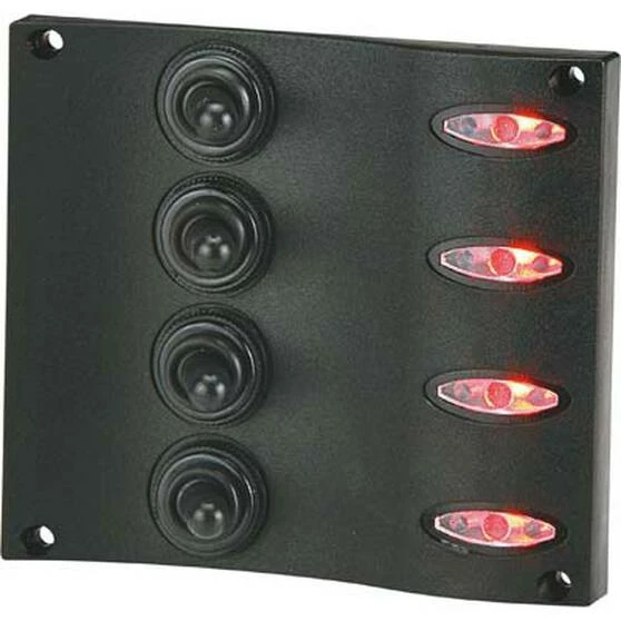 The Blueline Vertical 6 Gang Panel is a gang panel made out of a hard ABS plastic that is reinforced at the corners to resist cracking. Complete with water resistant switches and gaskets, the switches feature red LED lights when in use and is backed up with 20A switches and 15A fuses to ensure safety. It’s a very clean-looking and easy-to-use gang panel that is ideal for use in any boat. Having things on separate switches as opposed to hard-wired, makes identifying what you have on and off easy with a simple glance. For the full range of switches, gang panels, rocker switches and toggle switches available at BCF, call into our store and talk to one of our friendly, knowledgeable staff to find the one that’s right for you.