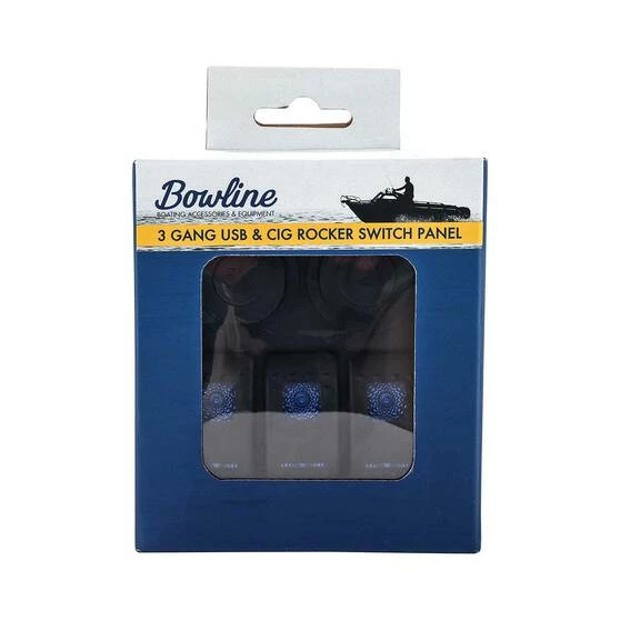 Deliver optimum power to everything you need with the Bowline Switch Panel 3 Rocker 2 USB Plus Cigarette Socket. This tough 3 gang rocker switch panel comes with a 5V dual USB socket with 2 ports powered at 2.4A, 1 cigarette socket powered at 12V 20A/24V 10A, and up to 25A per switch. With LED indicator lights on each switch to easily locate what needs to be switched on or off, sticky labels to identify each switch, and a water-resistant panel, switch, and gasket to protect it from the wet stuff while out in the great outdoors, Bowline have thought of everything for this switch panel! Ideal to control power to several accessories, install this onto your boat or in your vehicle for no-hassle connectivity next time you head out on an adventure.