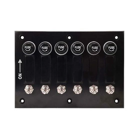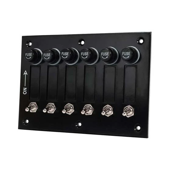 The Bowline Switch Panel 6 Gang Bakelite Black is a tough switch panel ideal for controlling power to a variety of accessories on both boats and vehicles. Have 6 different electronic devices hooked up at once and safely operate them at the flick of a switch. It features 5A per switch, screw-top fuse holders, and high-quality chromed toggle switches. It’s easy to use and convenient for when you need to run a few things at once out on the water or on your in-land adventure.