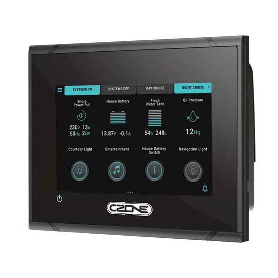 The CZone Touch 5 display is a compact screen option for your marine network system. This easy to use, 5 inch touch interface is feature packed, including an IPX7 waterproof rating, Wi-Fi connectivity for tablet pairing, and the latest CZone touch screen technology for sharp image clarity. This compact CZone display unit is perfect for smaller vessels with limited dash space, on exposed helm positions or flybridges, or even as a secondary display on larger boats. With many of the same features offered in the Touch 10, it’s a great display option for your marine network in a smaller package.